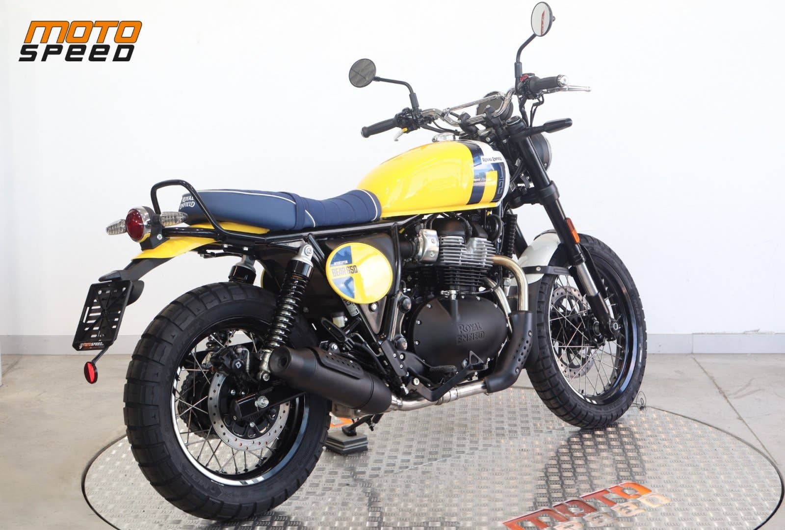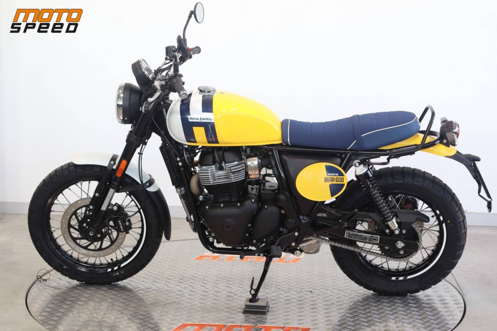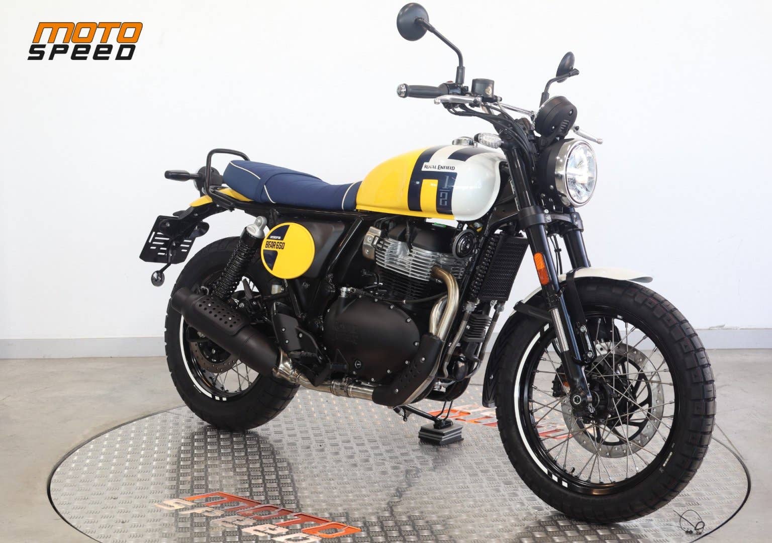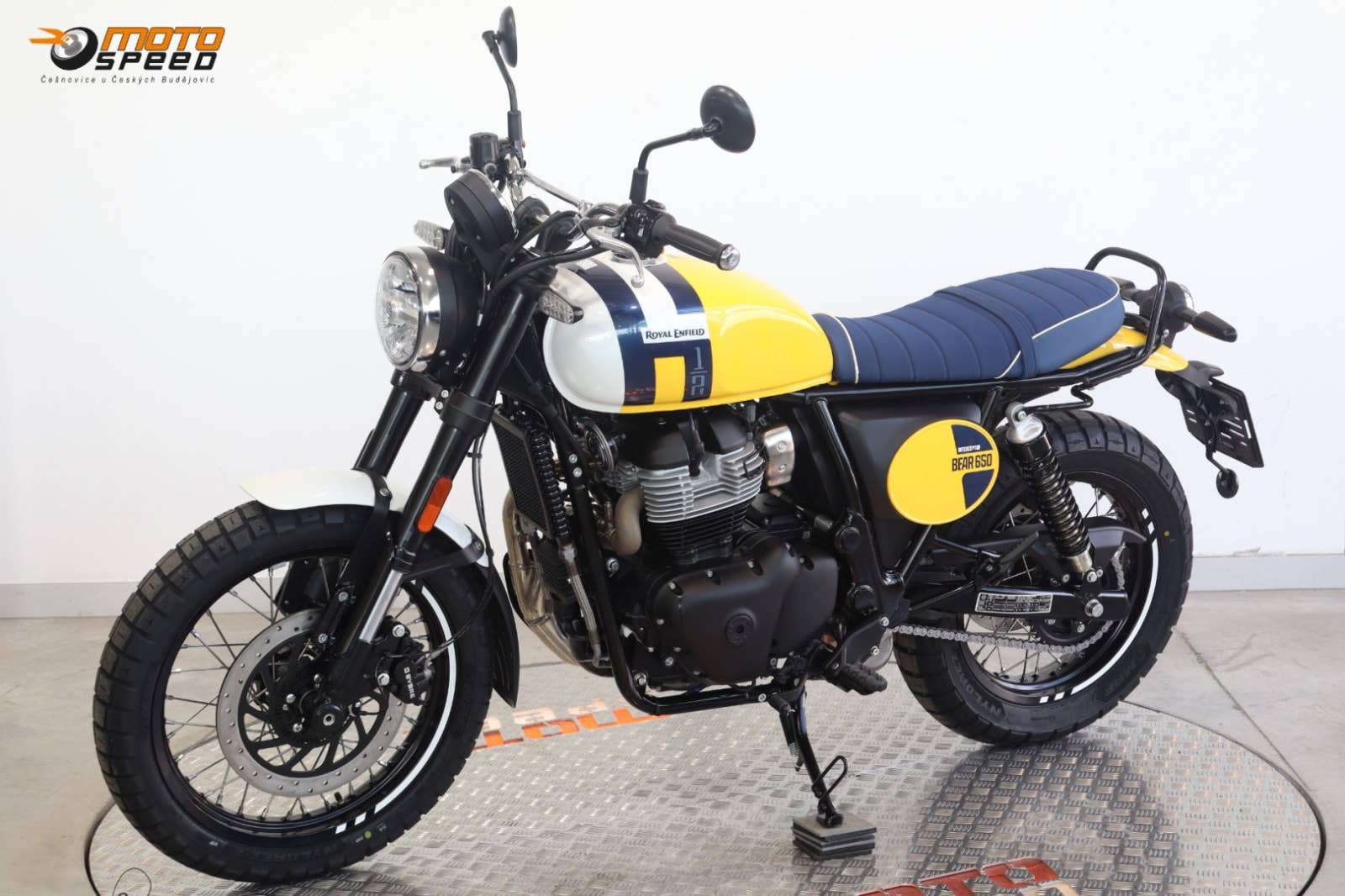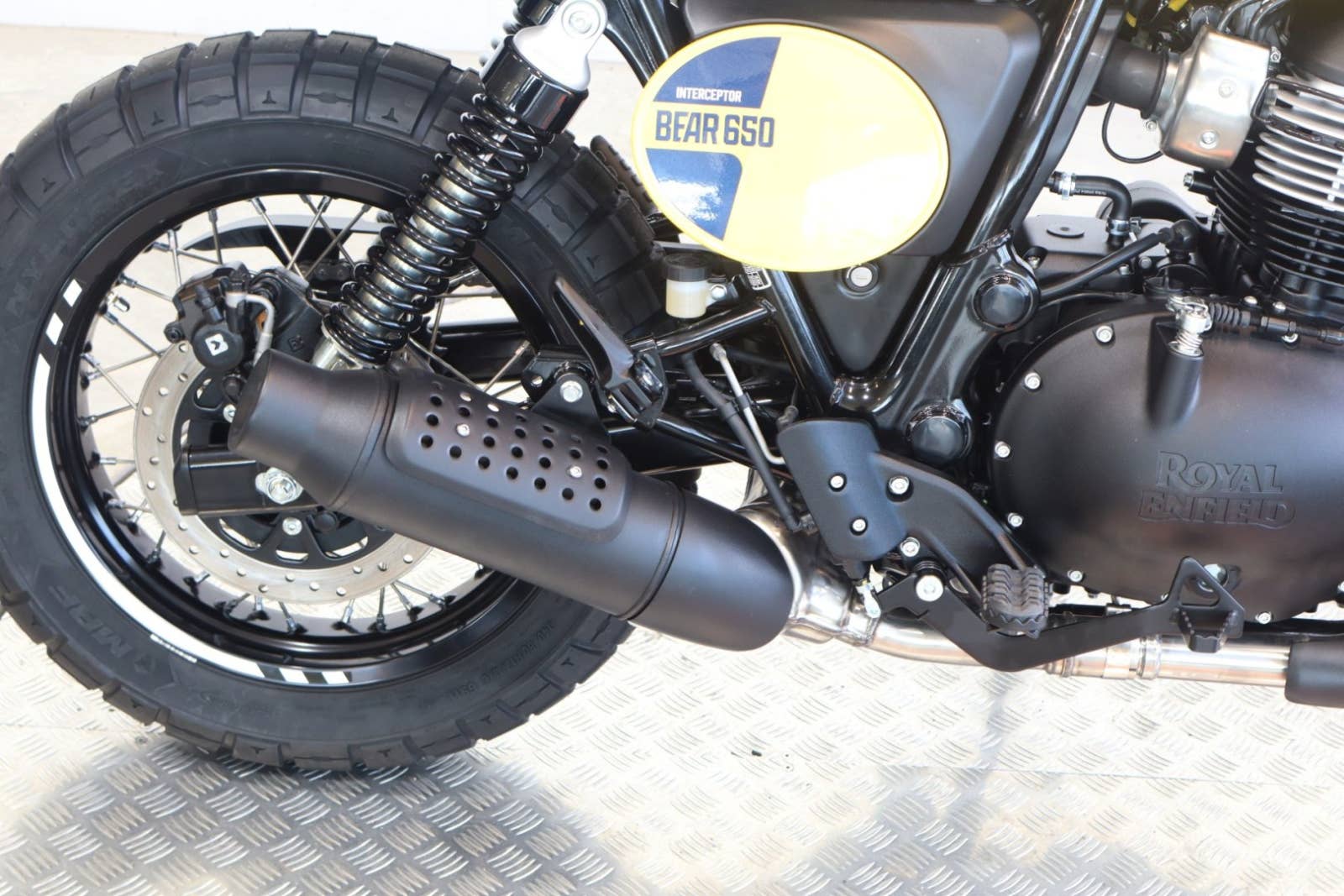 Bear 650 – stylový scrambler s duší 60. let založený na Interceptoru 650 a inspirovaný historickým vítězstvím Eddieho Muldera na Big Bear Run v roce 1960.